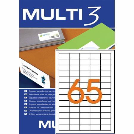Ετικέτες για inkjet, laser εκτυπωτές και φωτοαντιγραφικά. Μέγεθος: 38 x 21,2 Χρώμα: Άσπρη Μέγεθος χαρτιού: A4 Ετικέτες/φύλλο: 65 Φύλλα ανά κουτί: 100 Η άσπρη αυτοκόλλητη ετικέτα για inkjet , laser και αντιγραφικά, χαρακτηρίζεται από προσαρμοστικότητα, ευελιξία και ευκολία χρήσης.. |
