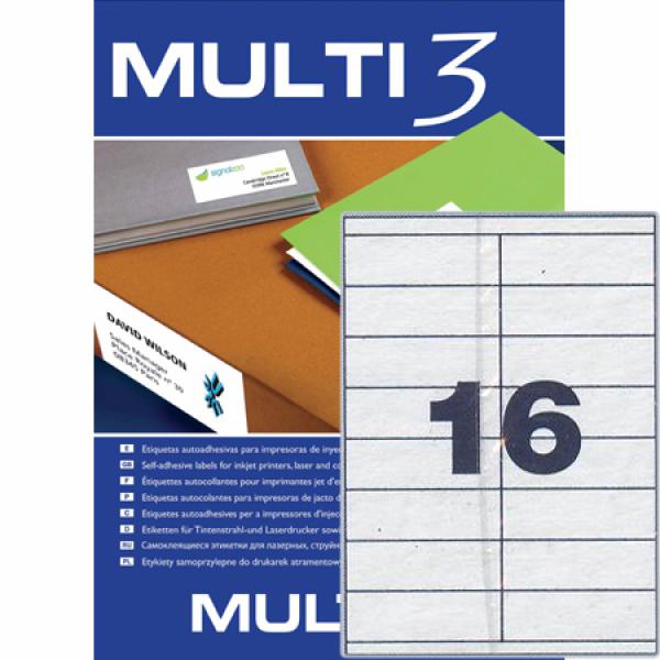 Μέγεθος: 105 x 35 Χρώμα: Άσπρη Μέγεθος χαρτιού: A4 Ετικέτες/φύλλο: 16 Φύλλα ανά κουτί: 100