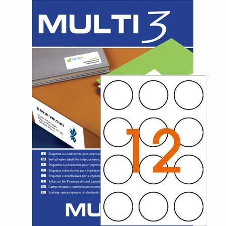 Μέγεθος: στρόγγυλη 60mm Χρώμα: Άσπρη Μέγεθος χαρτιού: A4 Ετικέτες/φύλλο: 12 Φύλλα ανά κουτί: 100